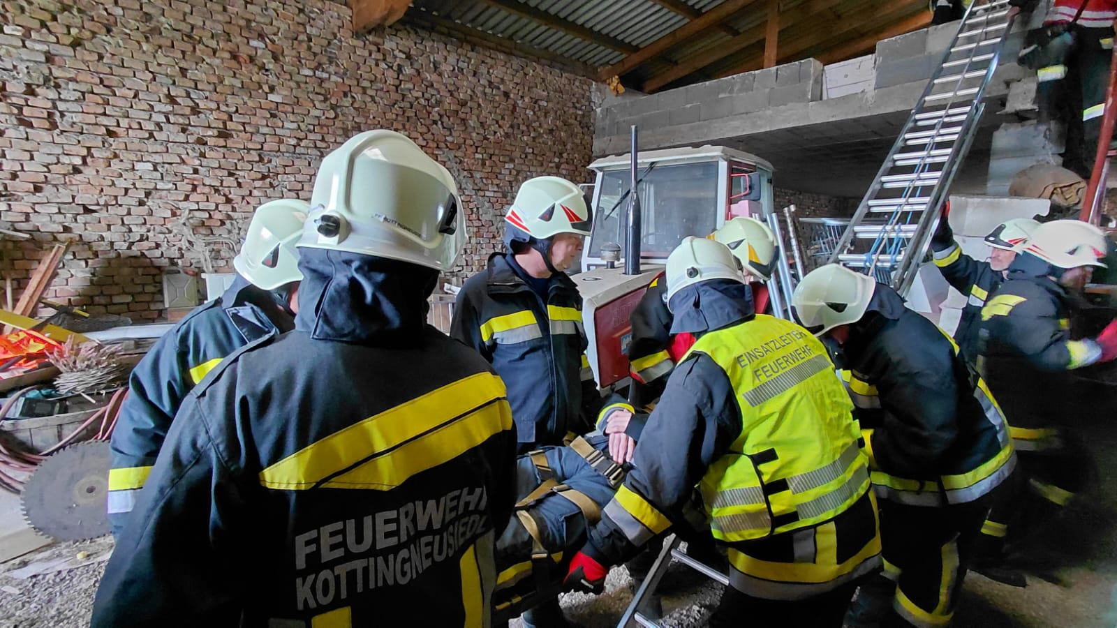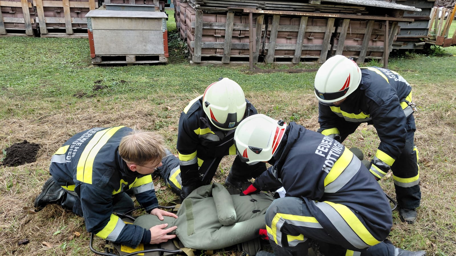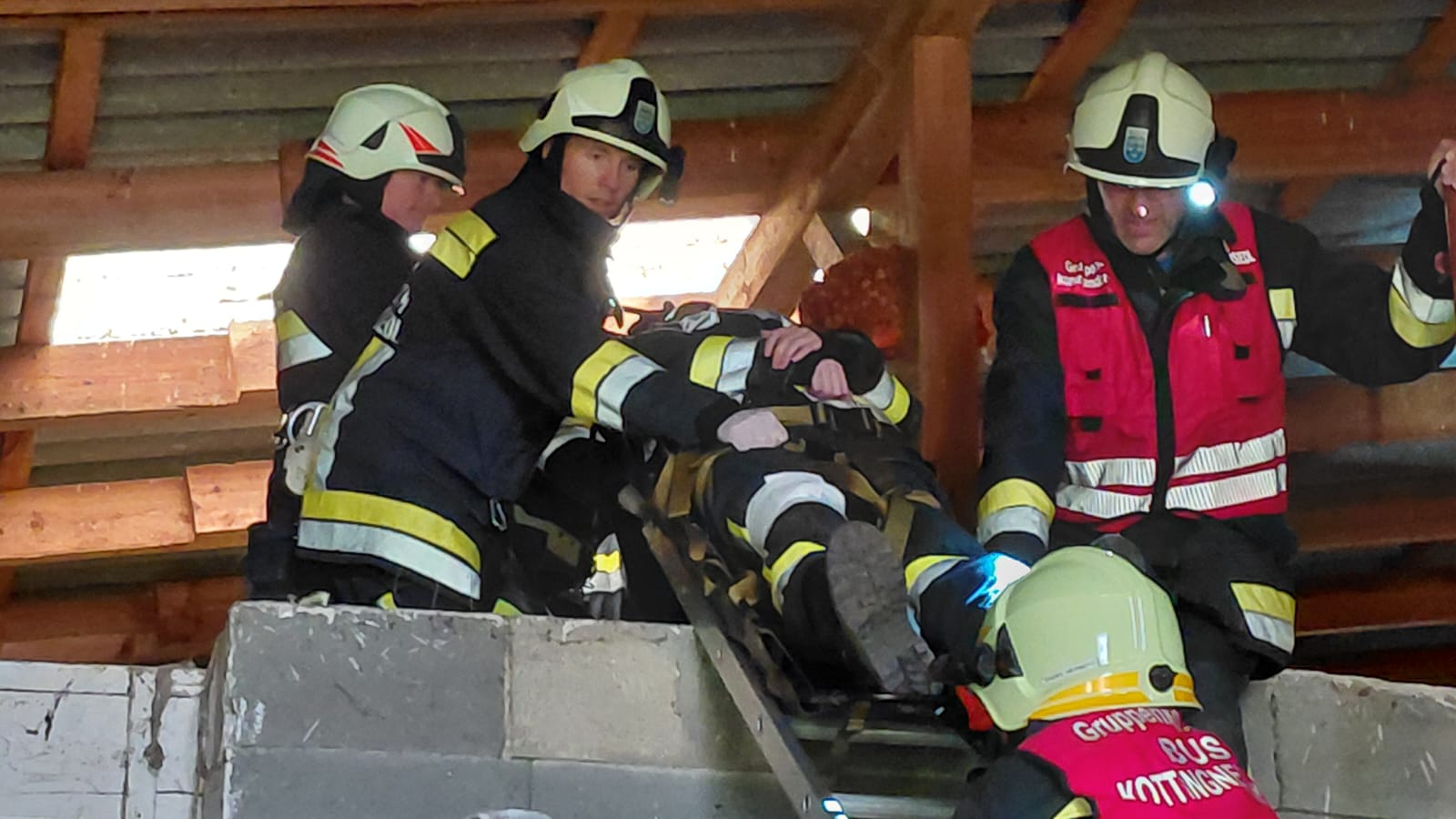 wurden das richtige Sichern, Arbeiten in der Höhe und die schonende Rettung einer verunfallten Person.